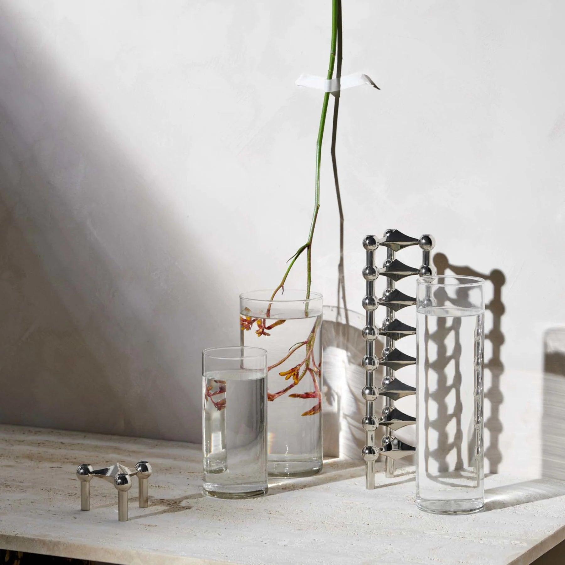Set van drie kaarsenhouders met een chroomafwerking is een iconisch ontwerp van Stoff Nagel, dat een extra dimensie geeft aan interieurs in huizen over de hele wereld — het kan uitgroeien tot een plastisch kunstwerk dat de vorm aanneemt die past bij de visie van de eigenaar. U kunt het combineren en samenstellen met andere modellen van Stoff Nagel en gebruiken met kegelvormige kaarsen of het gewoon als een decoratief kunstwerk laten staan.