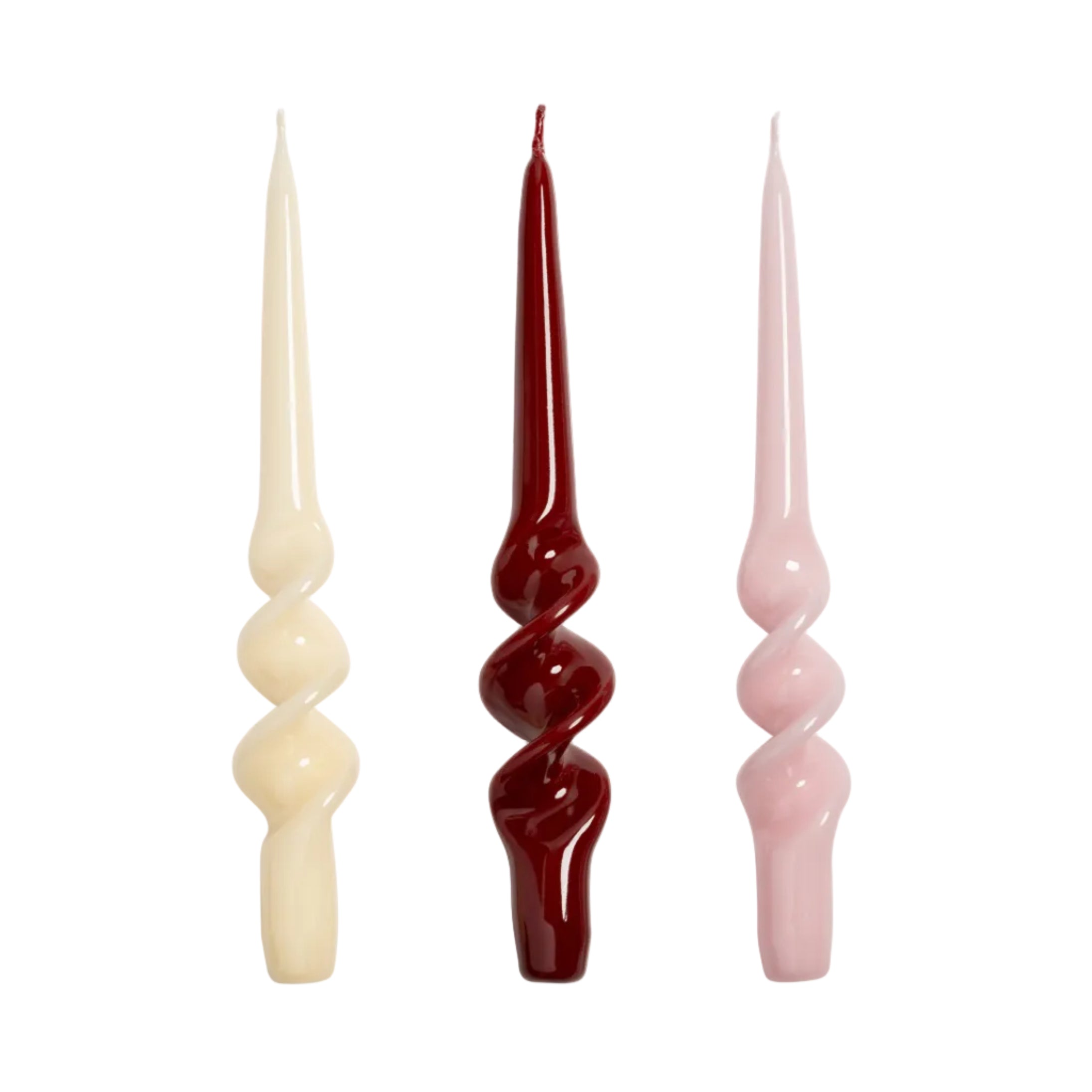 Set van kaarsen ALPHA REDS roze met bordeaux en geel
