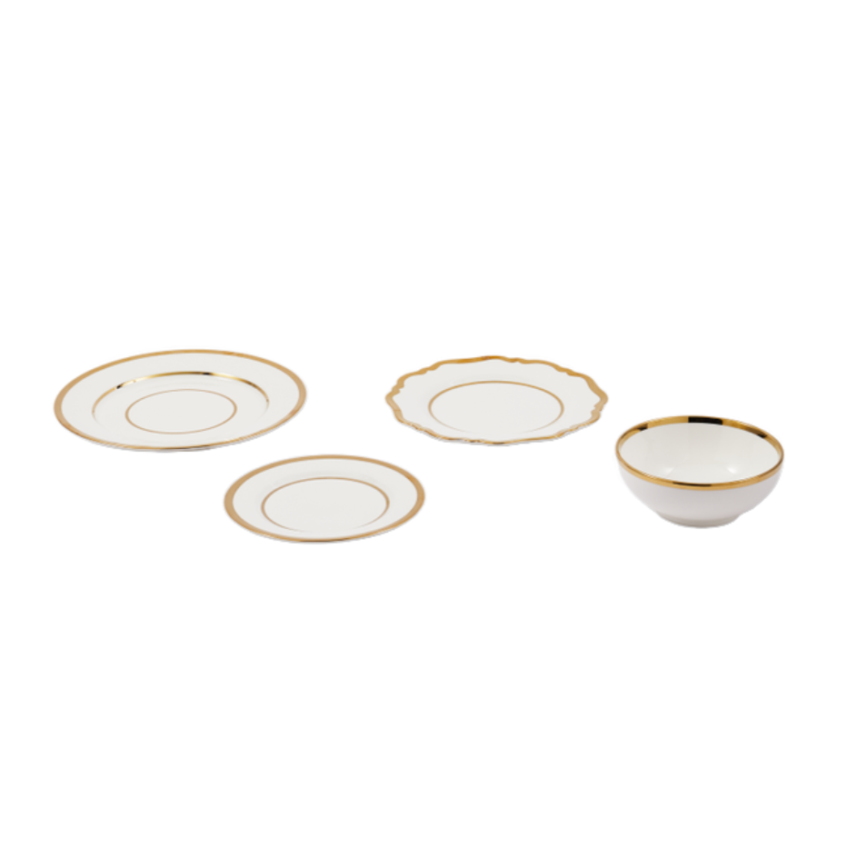 Zastawa stołowa Golden Finds to idealnie niedopasowana kolekcja, która wygląda jak znalezisko z klimatycznego sklepu vintage – ale w luksusowym wydaniu. Każdy element różni się wzorem, tworząc eklektyczną i pełną charakteru całość, ozdobioną subtelnymi złotymi detalami.