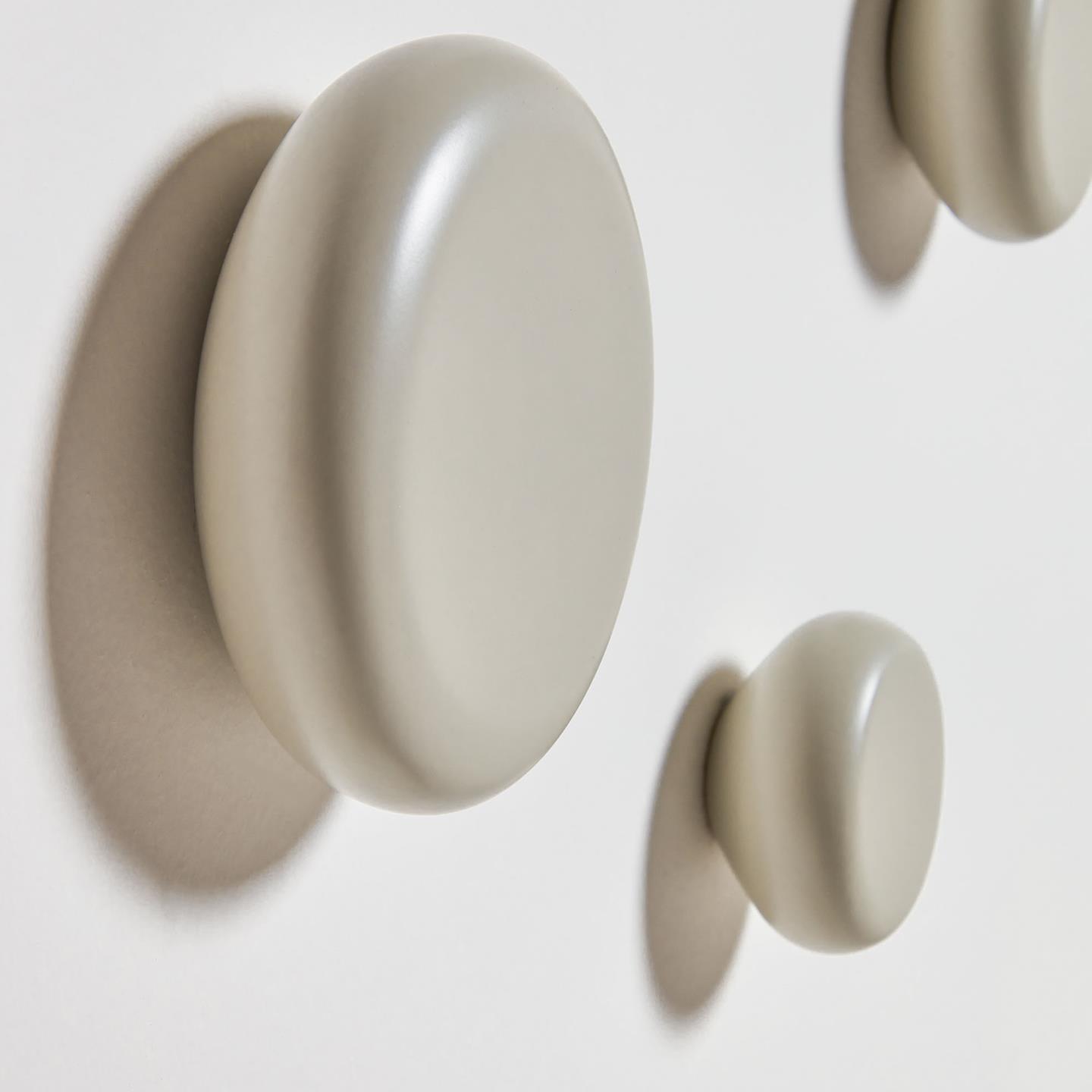 De set van drie ronde haken Nadue, gemaakt van massief beukenhout in verschillende maten, is een organisch ontwerp van het Kave Home-team, dat lokaal wordt geproduceerd. Het bevat stekkers die geschikt zijn voor zowel bakstenen als gipsplaten.