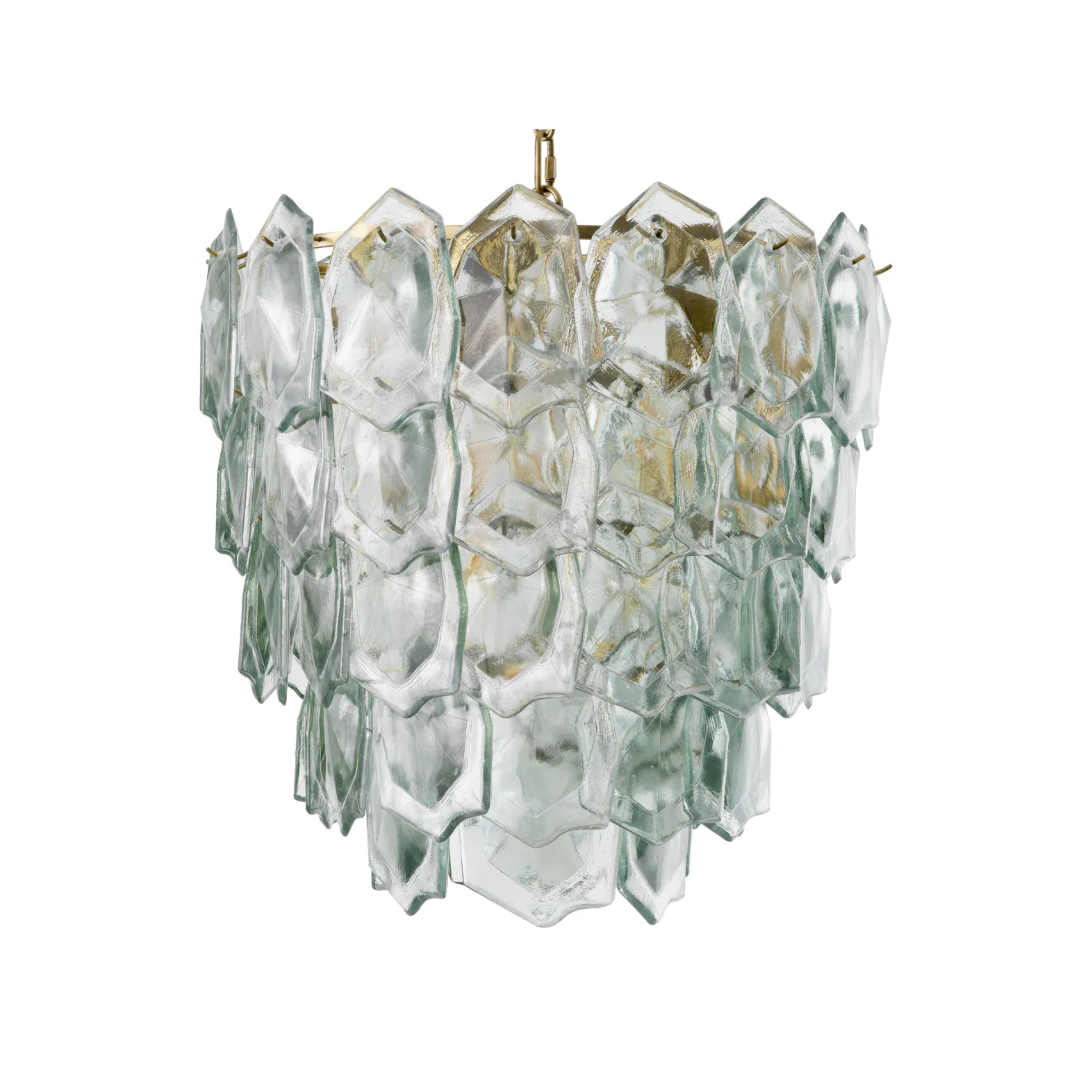 Kroonluchter Elias is de essentie van retro stijl geïnspireerd door de jaren '50, in een elegante en tijdloze uitvoering. Hangend aan een lange ketting, is de kroonluchter uitgevoerd in een afwerking in de kleur van oud messing en versierd met meer dan 60 handgemaakte glazen elementen, die een unieke spel van licht en structuur creëren. Elk glazen detail is zorgvuldig vervaardigd door ambachtslieden, wat dit model tot een waar kunstwerk maakt.