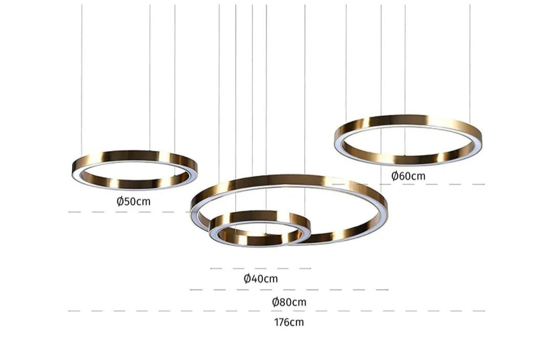 Moderne kroonluchter Lilou in geborsteld goud is luxe verlichting die betovert met zijn elegantie en opvallend design. De vorm, bestaande uit verschillende ringen die op verschillende hoogtes hangen, past prachtig in ruime interieurs en creëert een unieke lichtarrangement. De warme lichtkleur van 2700 K brengt een gezellige sfeer die perfect is voor de woonkamer, eetkamer of boven de tafel.